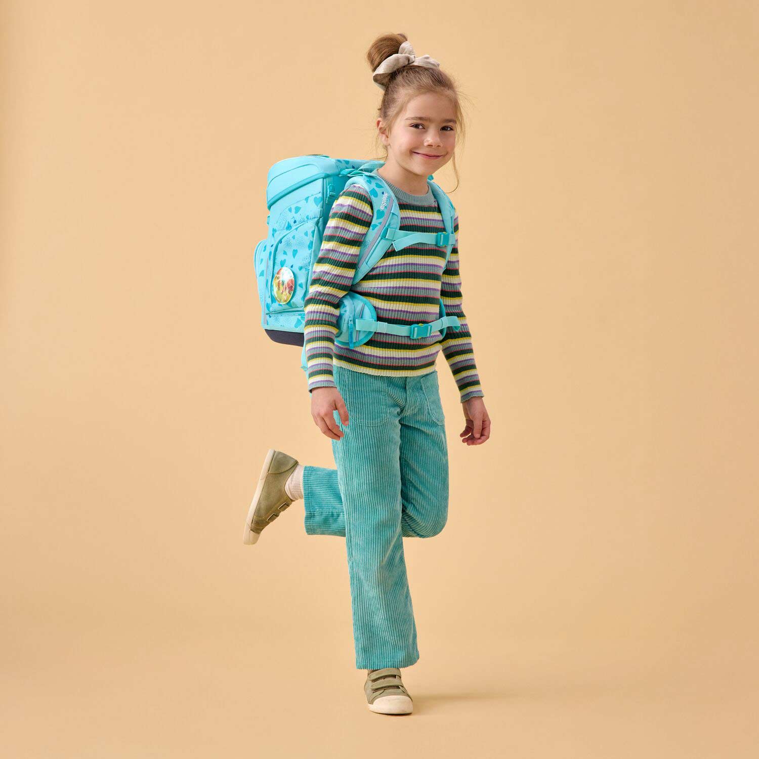 Der türkise Ergobag Cubo ReitBärtraum ist der perfekte Schulranzen für alle Pferdeliebhaberinnen. Das 5-teilige Set besteht aus dem Schulranzen Cubo, einem gefülltem Federmäppchen, einem Schlampermäppchen sowie einem Sportbeutel und den praktischen Kletties, mit denen du deinem Schulranzen einen neuen Look verleihen kannst.