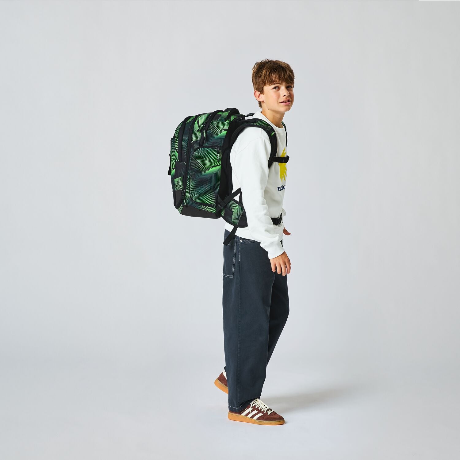 Egal ob du gerade 1,40 oder schon 1,80 groß bist: Der Satch Match macht alles mit! Das höhenverstellbare Tragesystem lässt sich genau auf deine Körpergröße anpassen. Die breiten, gepolsterten Schultergurte und der bequeme Beckengurt sorgen dafür, dass der Rucksack nicht drückt – selbst wenn er mal schwer ist. Für einen Schulrucksack, der sich richtig gut anfühlt!