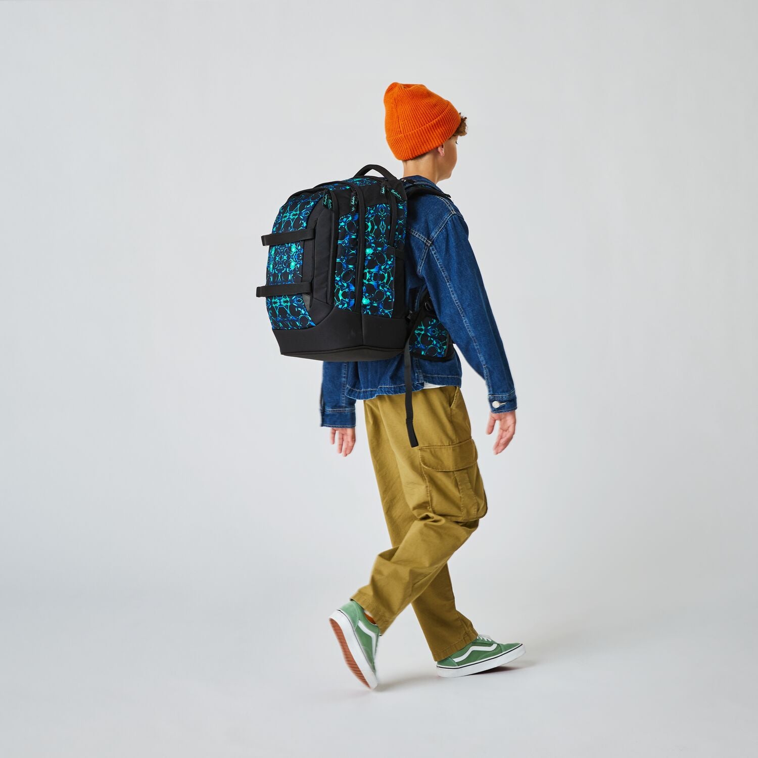 Der Satch Pack Caleido Blue ist ein echter Blickfang! Das Muster aus leuchtendem Blau und Türkis kommt auf dem schwarzem Hintergrund so richtig gut zur Geltung. Ideal für alle, die auffällige Designs lieben und ihren eigenen Style zeigen wollen. Ob Schule, Ausflug oder Freizeit: Mit dem Satch Pack Caleido Blue wird’s nie langweilig.