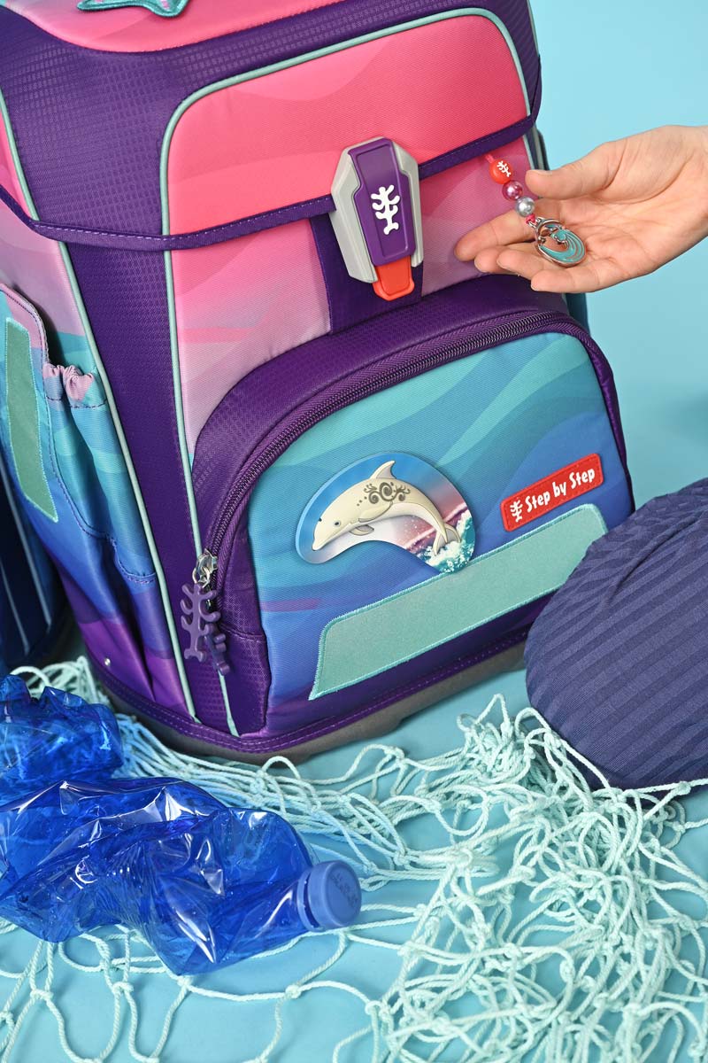 Die Step by Step Schulranzen werden aus bis zu 36 recycelten PET-Flaschen hergestellt. Damit hilfst du schon ab der Einschulung, Plastikmüll zu reduzieren und Ressourcen zu schonen. So wird der Schulstart zum kleinen Beitrag für unsere Umwelt.