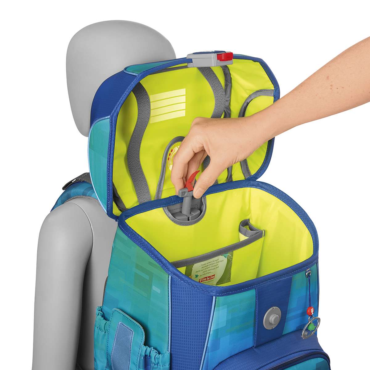 - Laschen zur platzsparenden Aufbewahrung des Federmäppchens im Schulranzen-Deckel