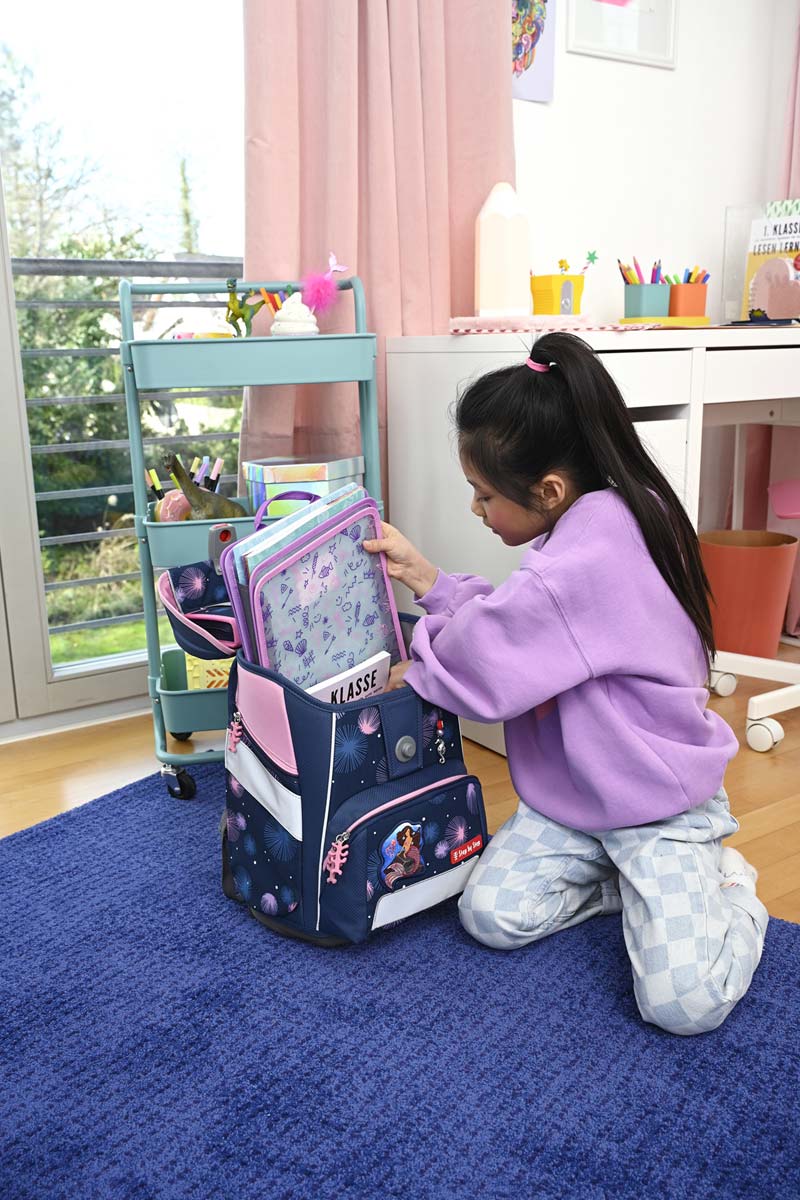 Das 5-teilige Schulranzenset von Step by Step mit dem Meerjungfrauen-Motiv "Mermaid Delia" beinhaltet den Schulranzen Space, einen Sportbeutel, ein Federmäppchen und Schlampermäppchen sowie die Magic Mags. Durch die Magic Mags kannst Du Deinen Schulranzen im Handumdrehen individuell gestalten.